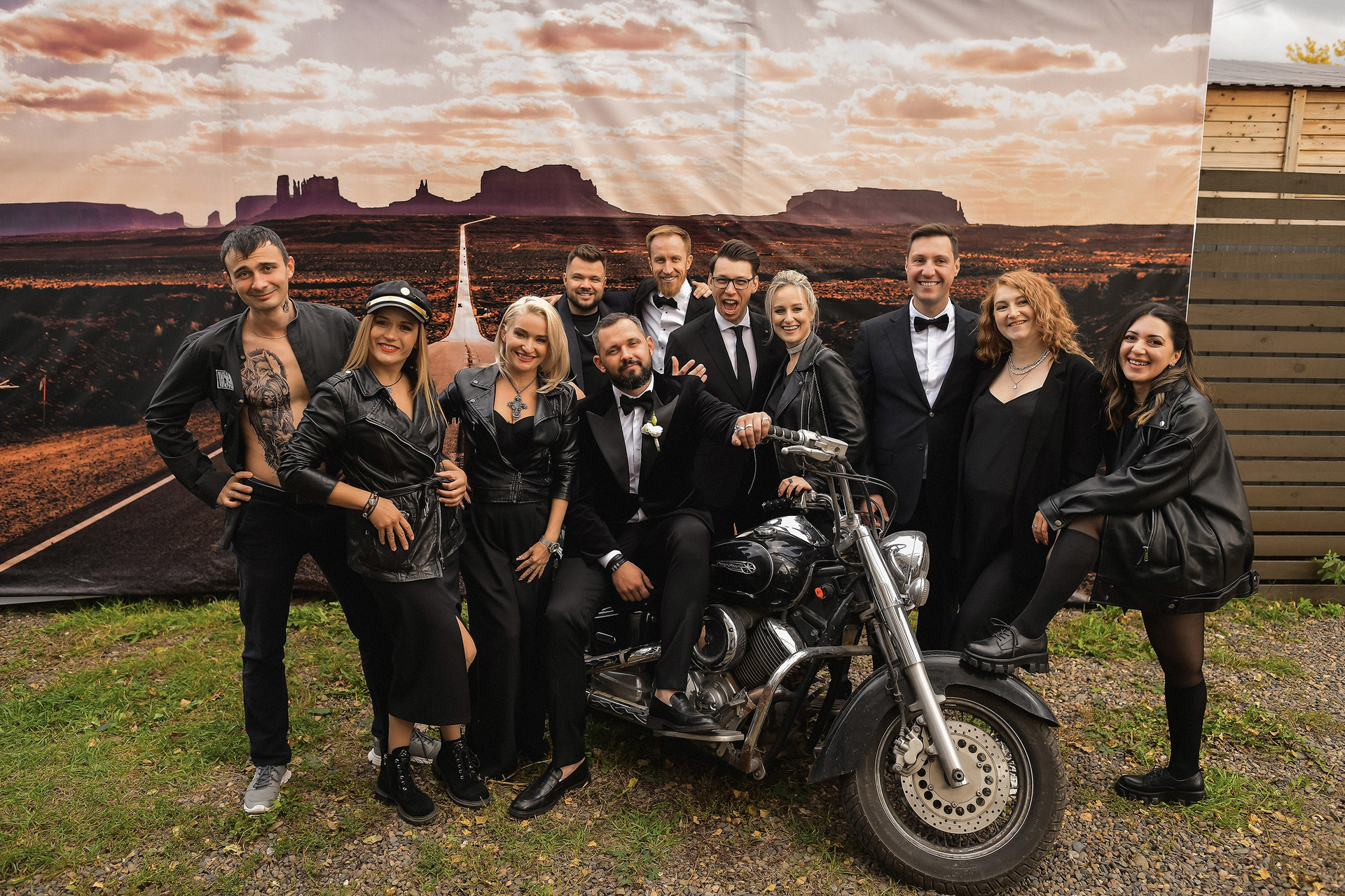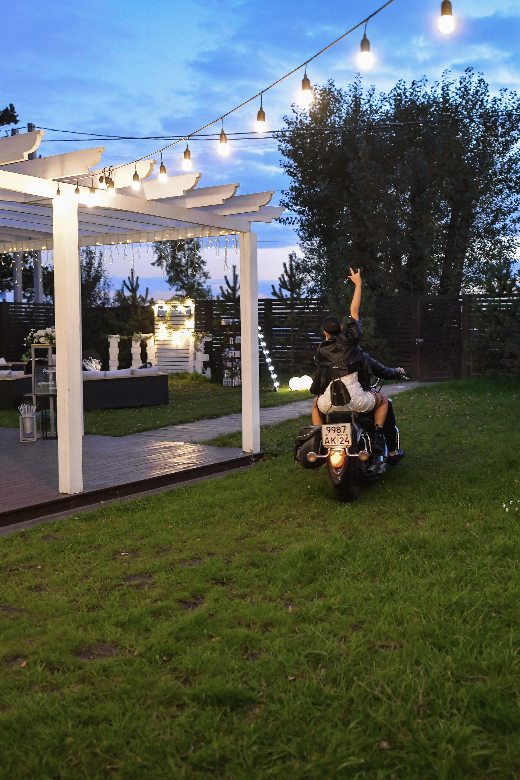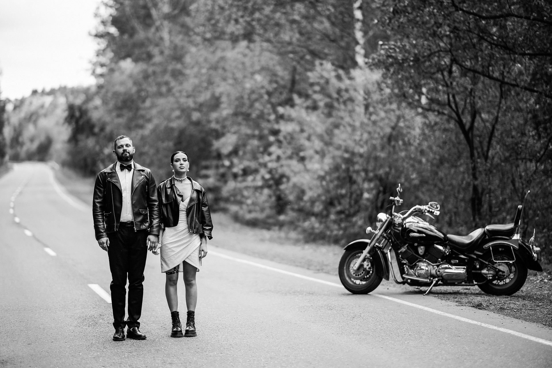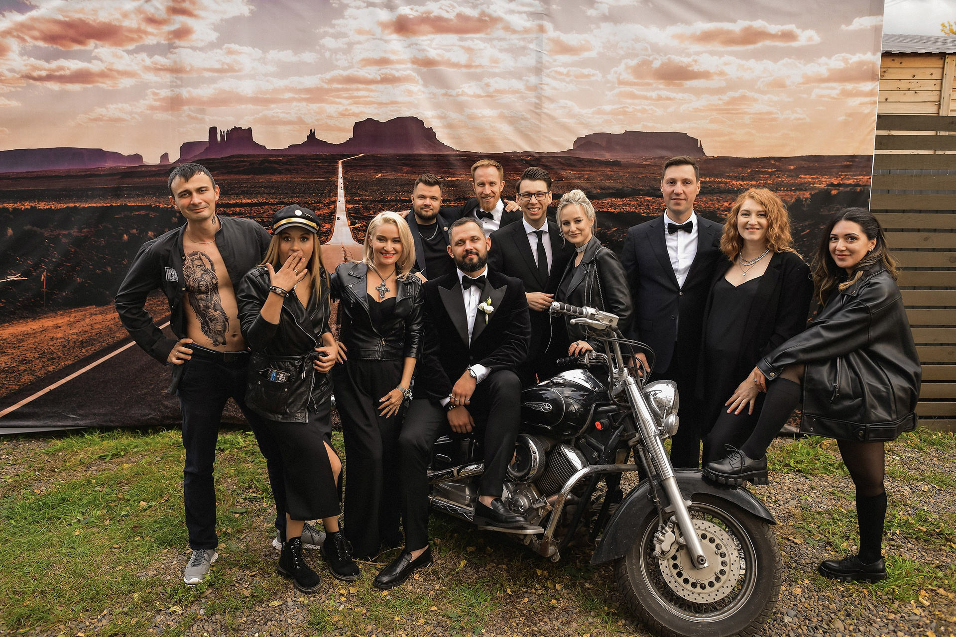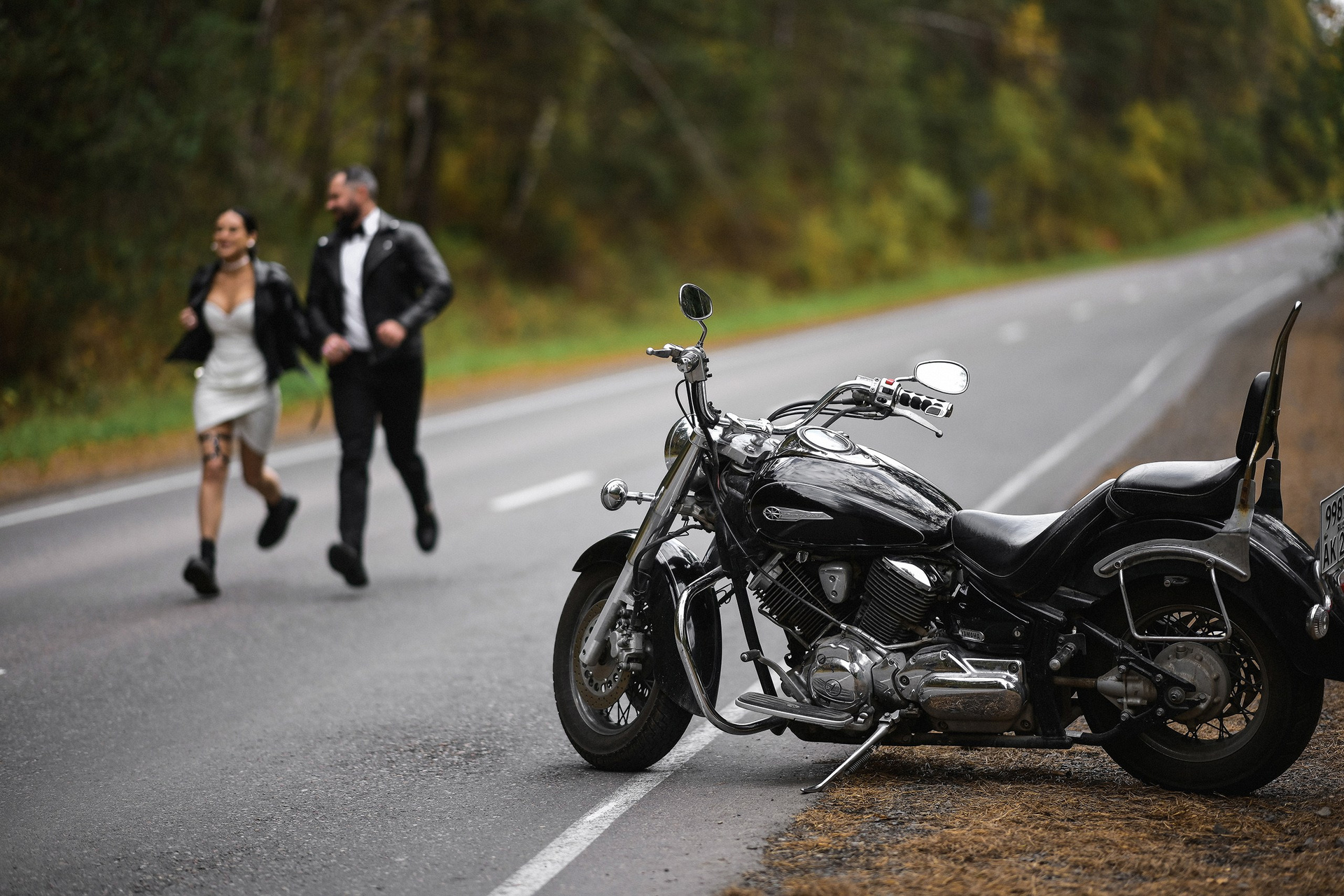 Здесь 2 дня съемок: сама свадьба, а фотосессия на мотоциклах и на море снимались в отдельный день.