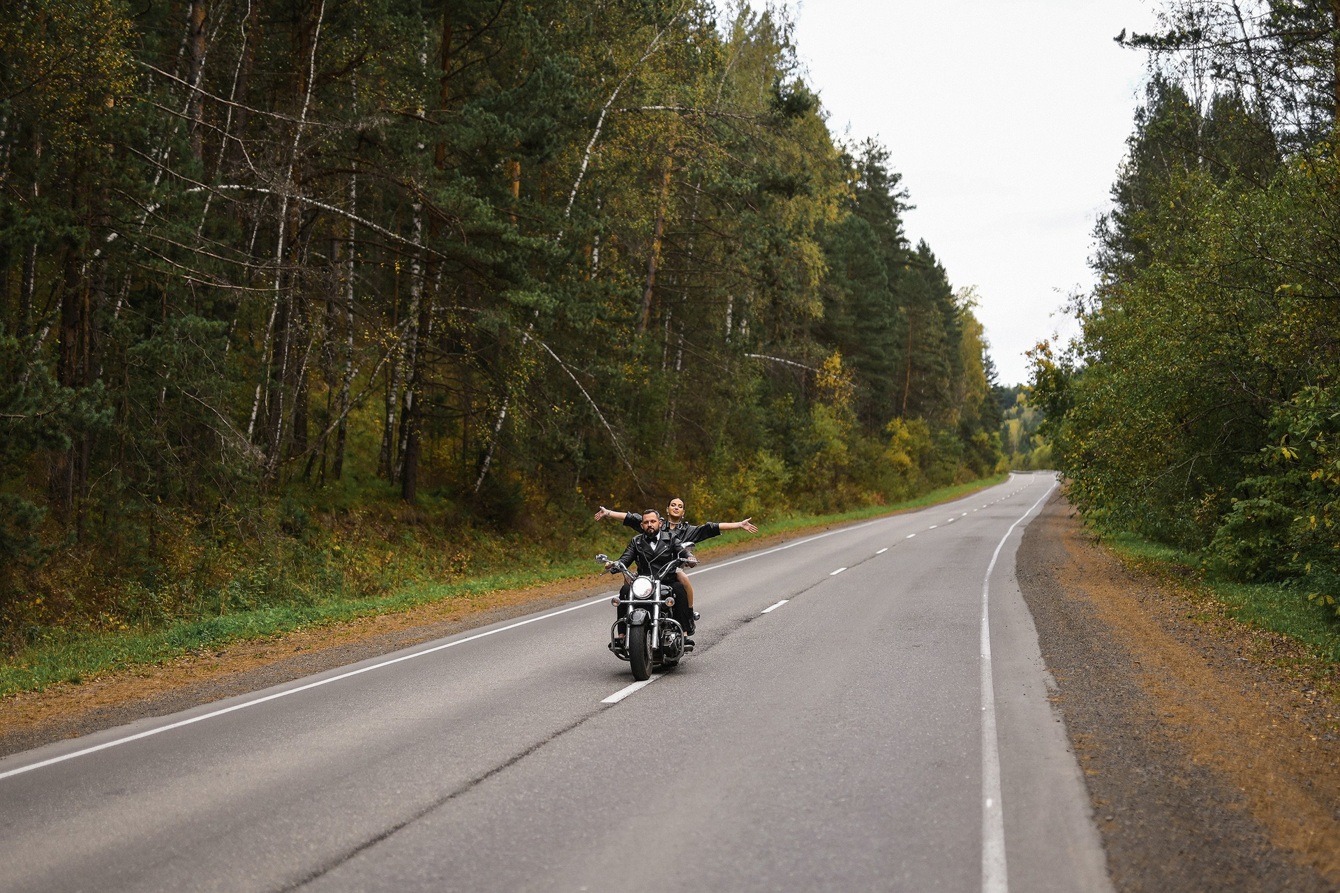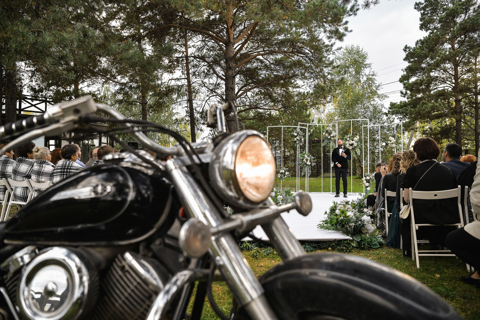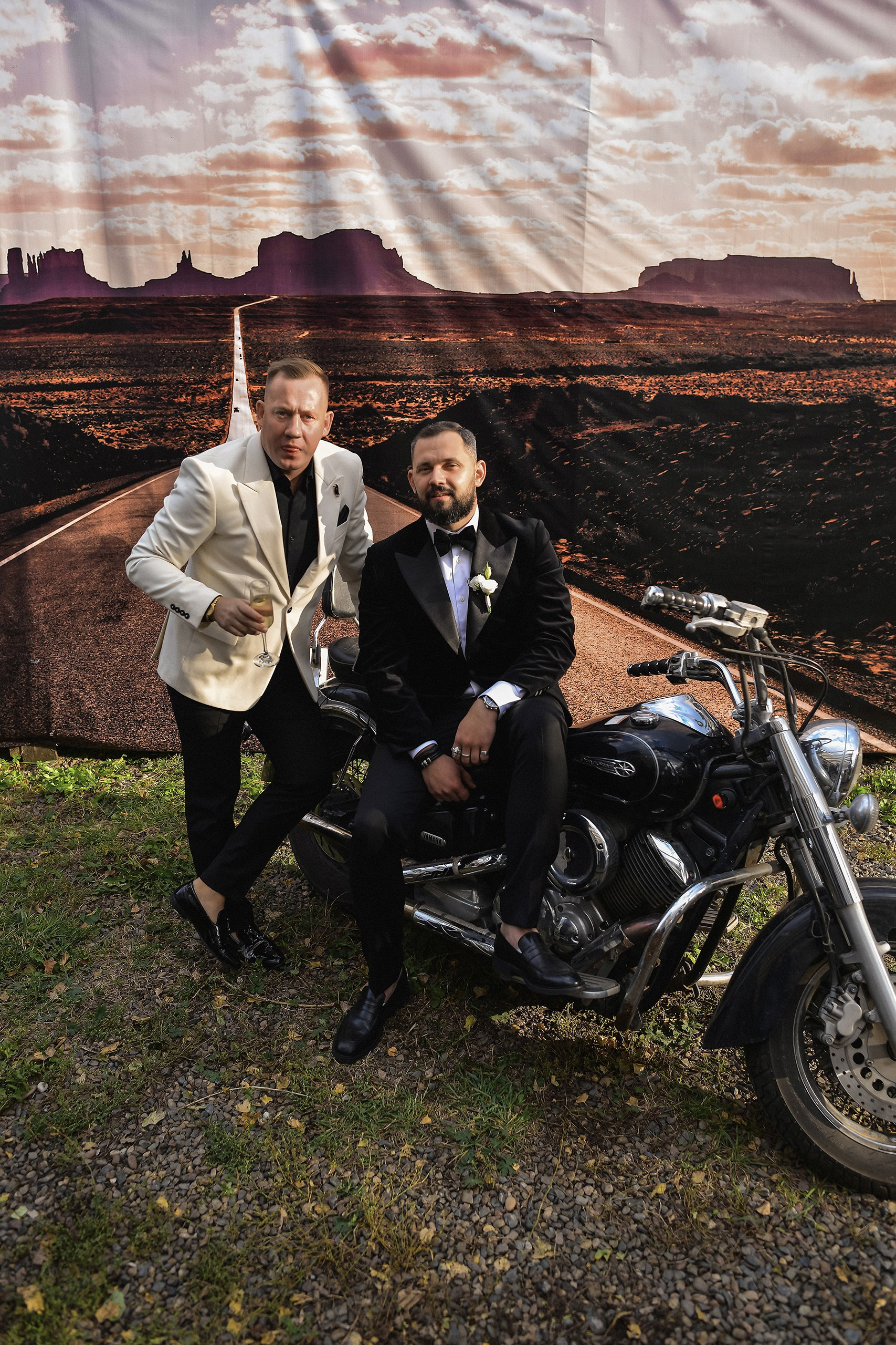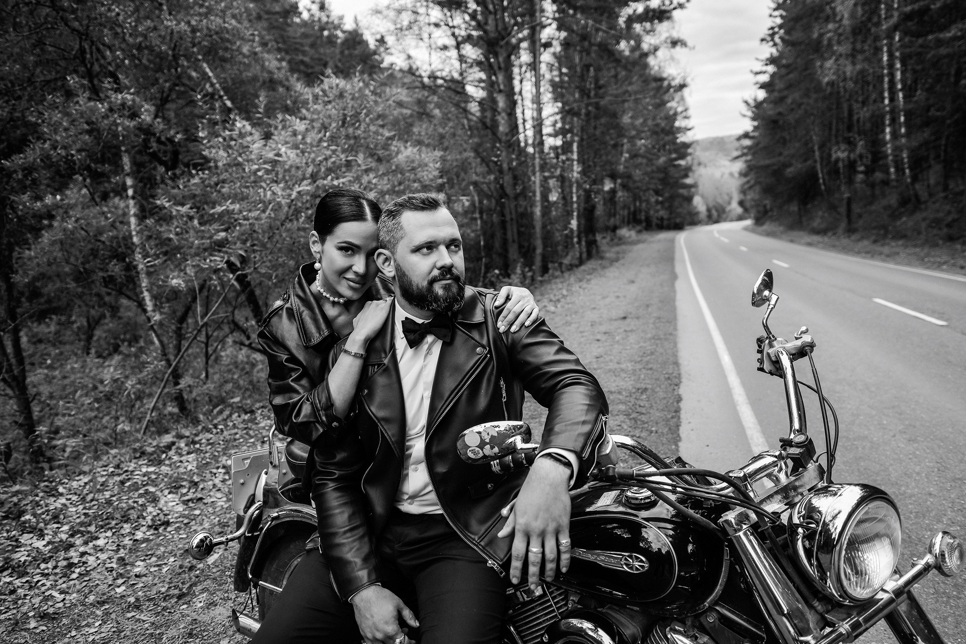 Здесь 2 дня съемок: сама свадьба, а фотосессия на мотоциклах и на море снимались в отдельный день.