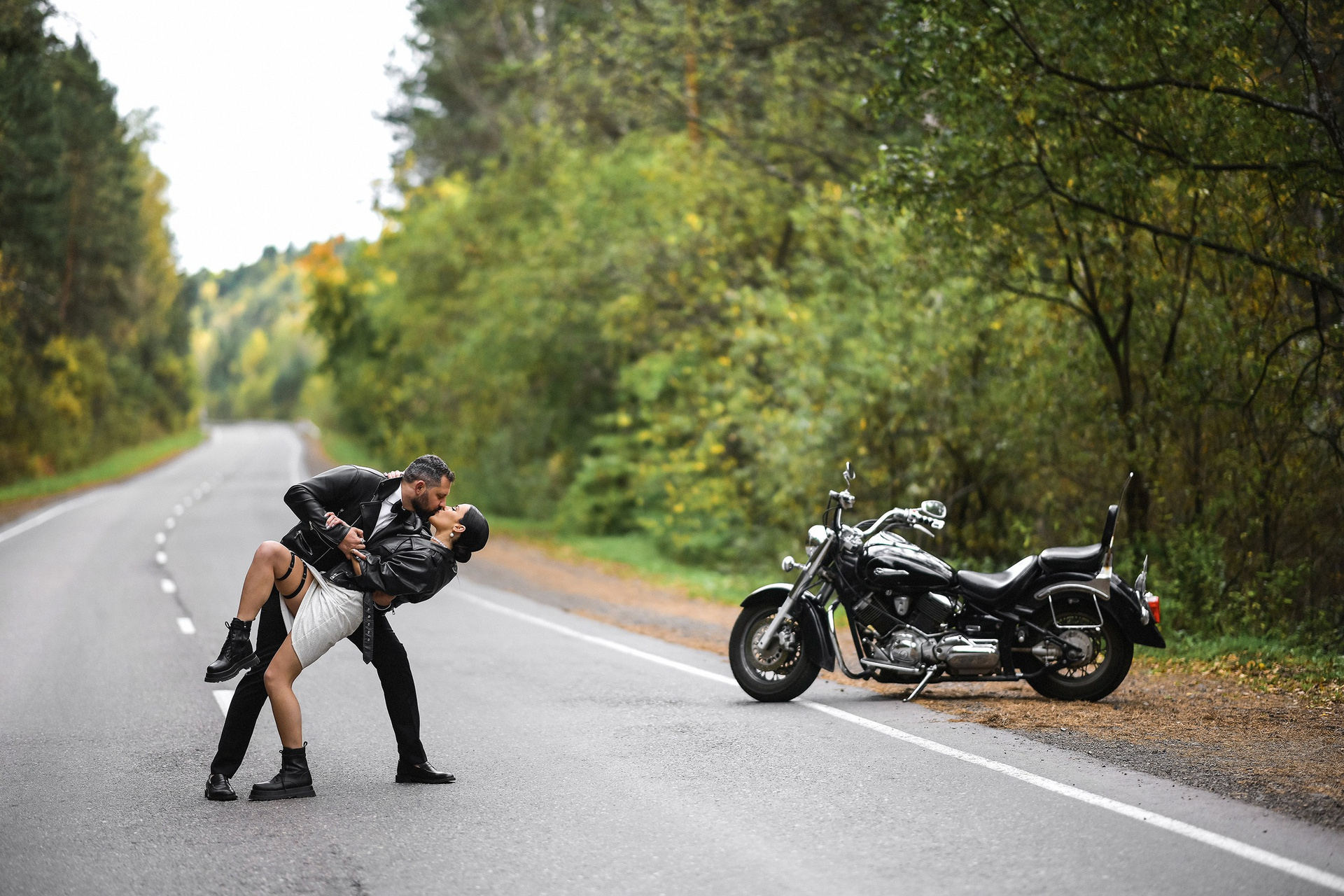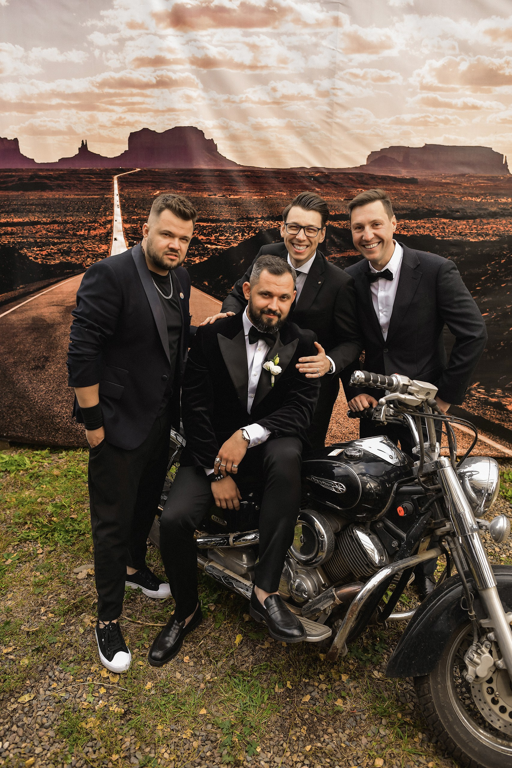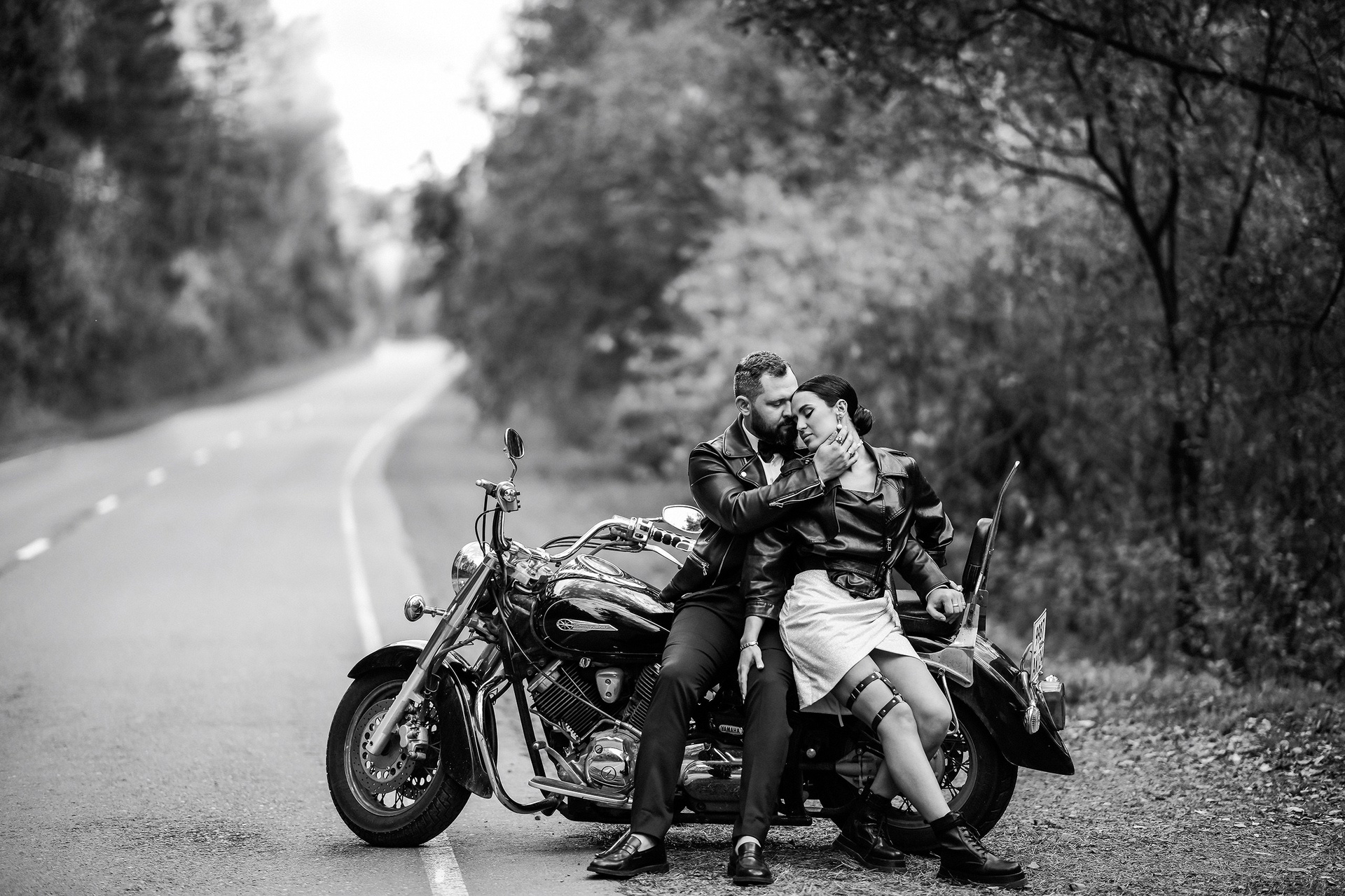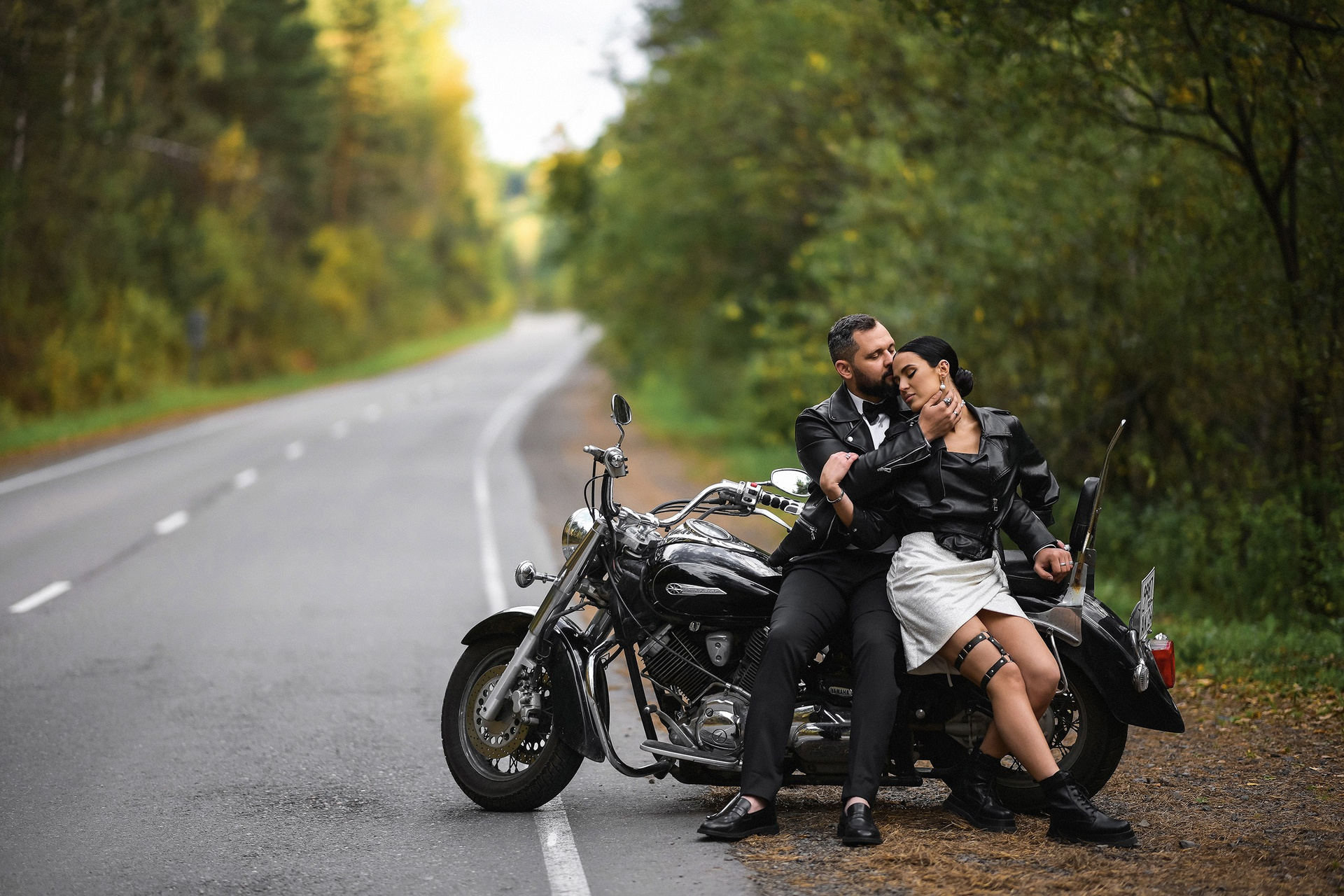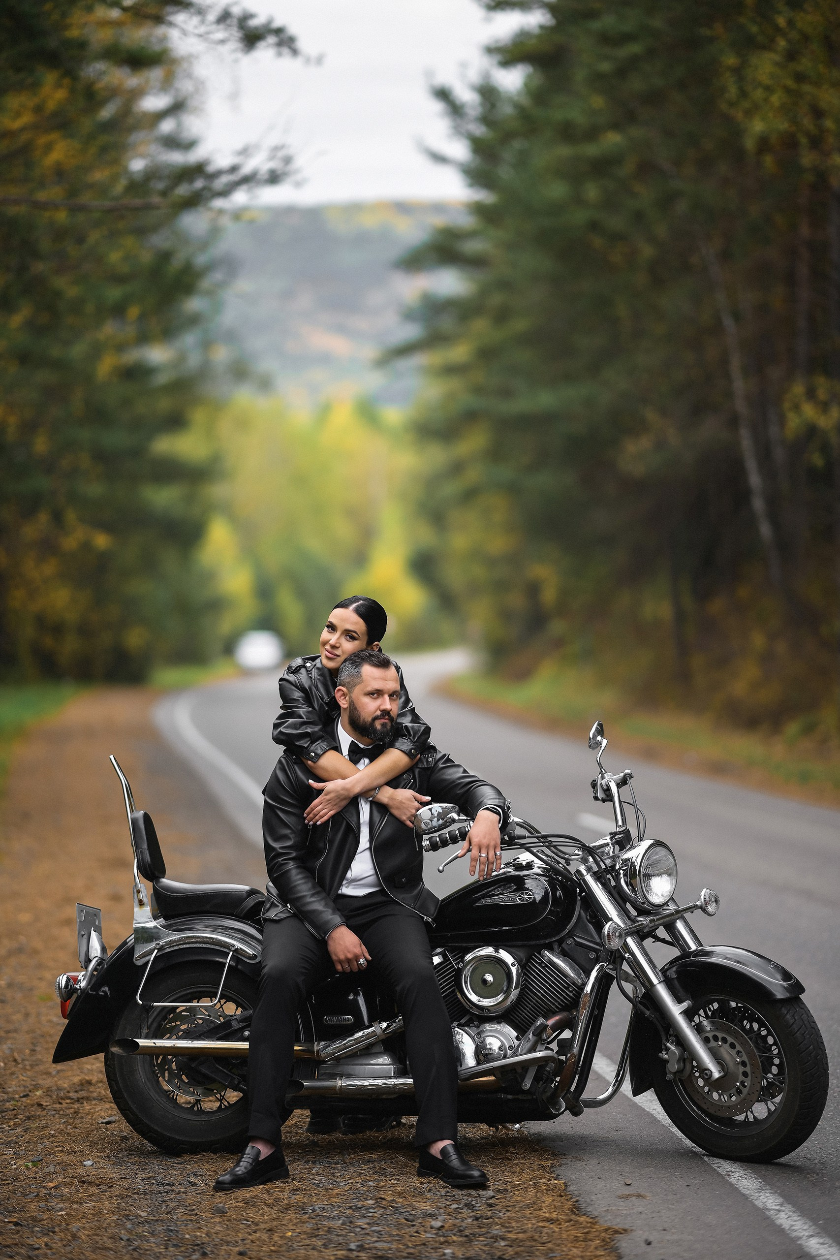 Здесь 2 дня съемок: сама свадьба, а фотосессия на мотоциклах и на море снимались в отдельный день.