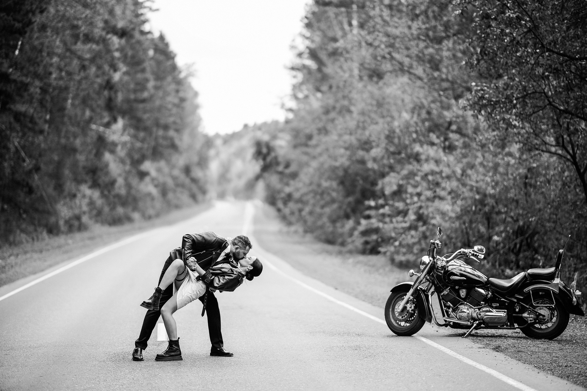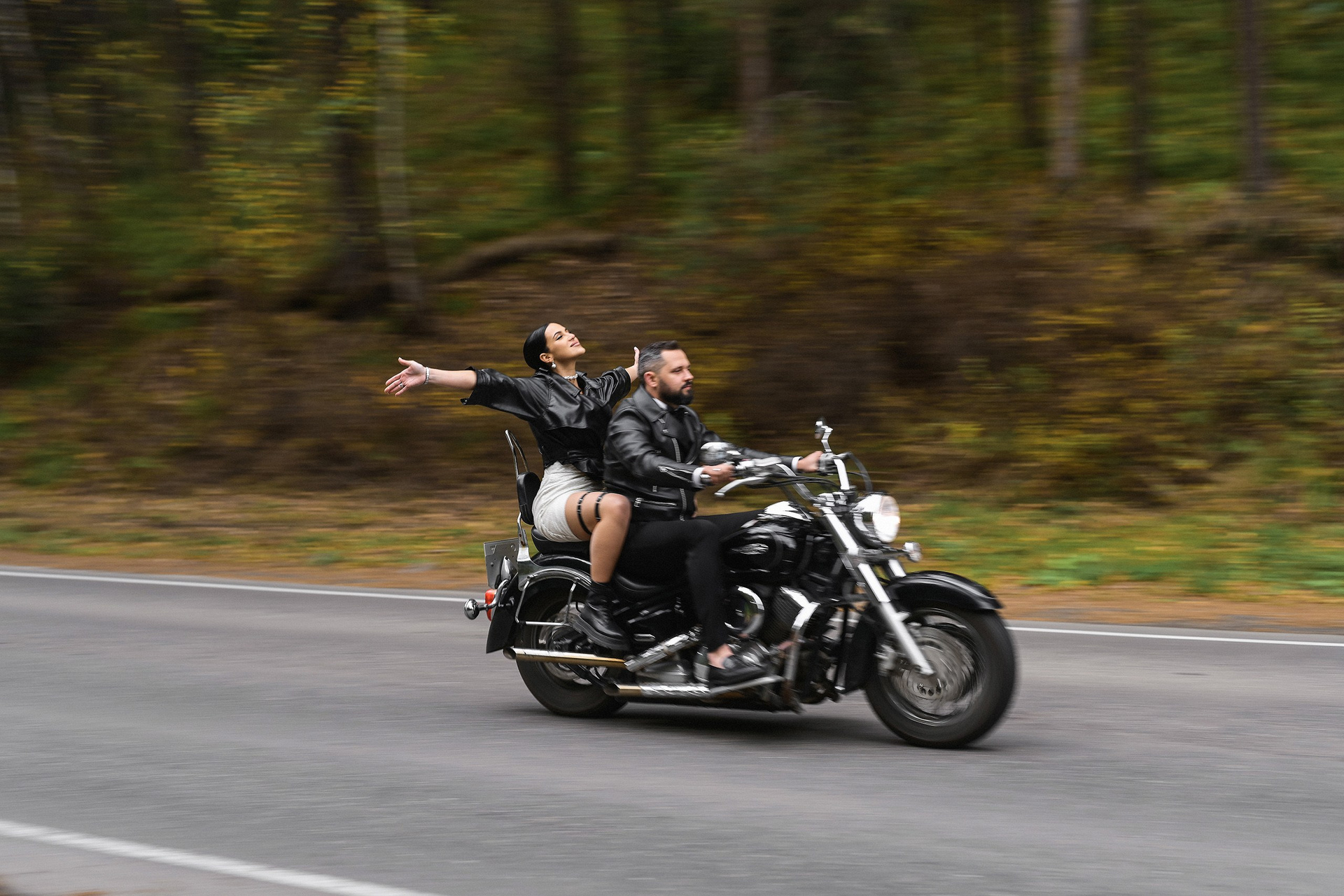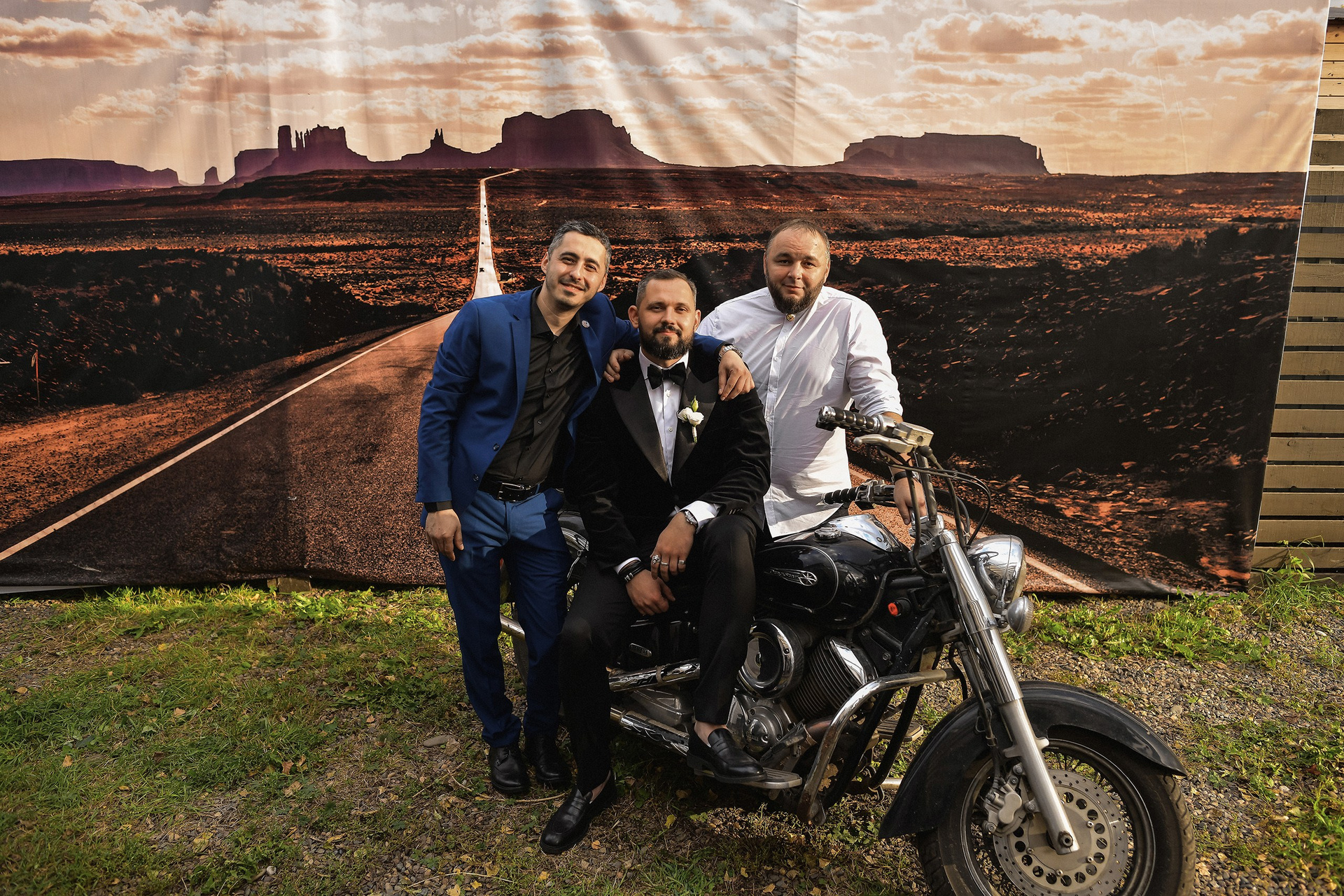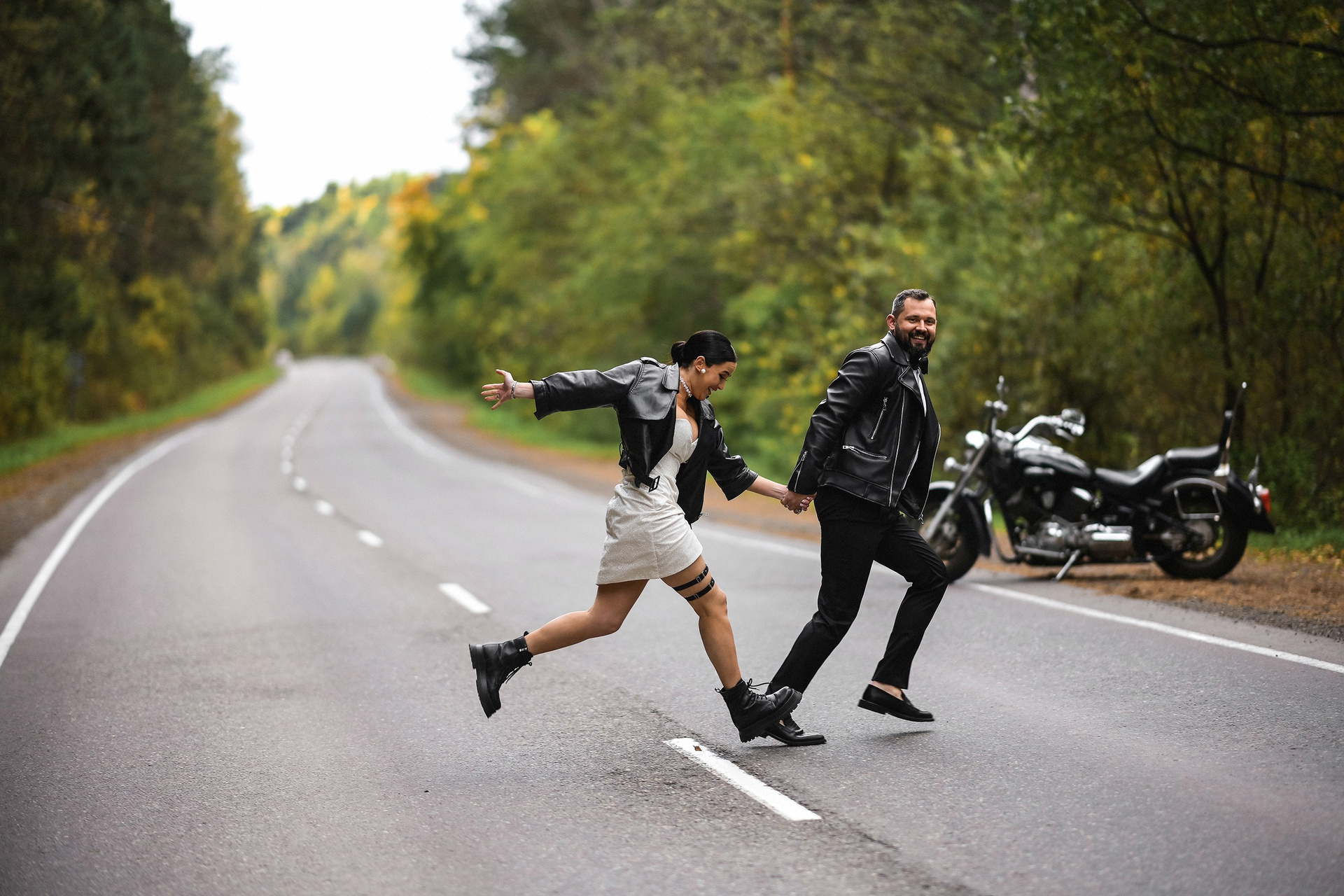 Здесь 2 дня съемок: сама свадьба, а фотосессия на мотоциклах и на море снимались в отдельный день.