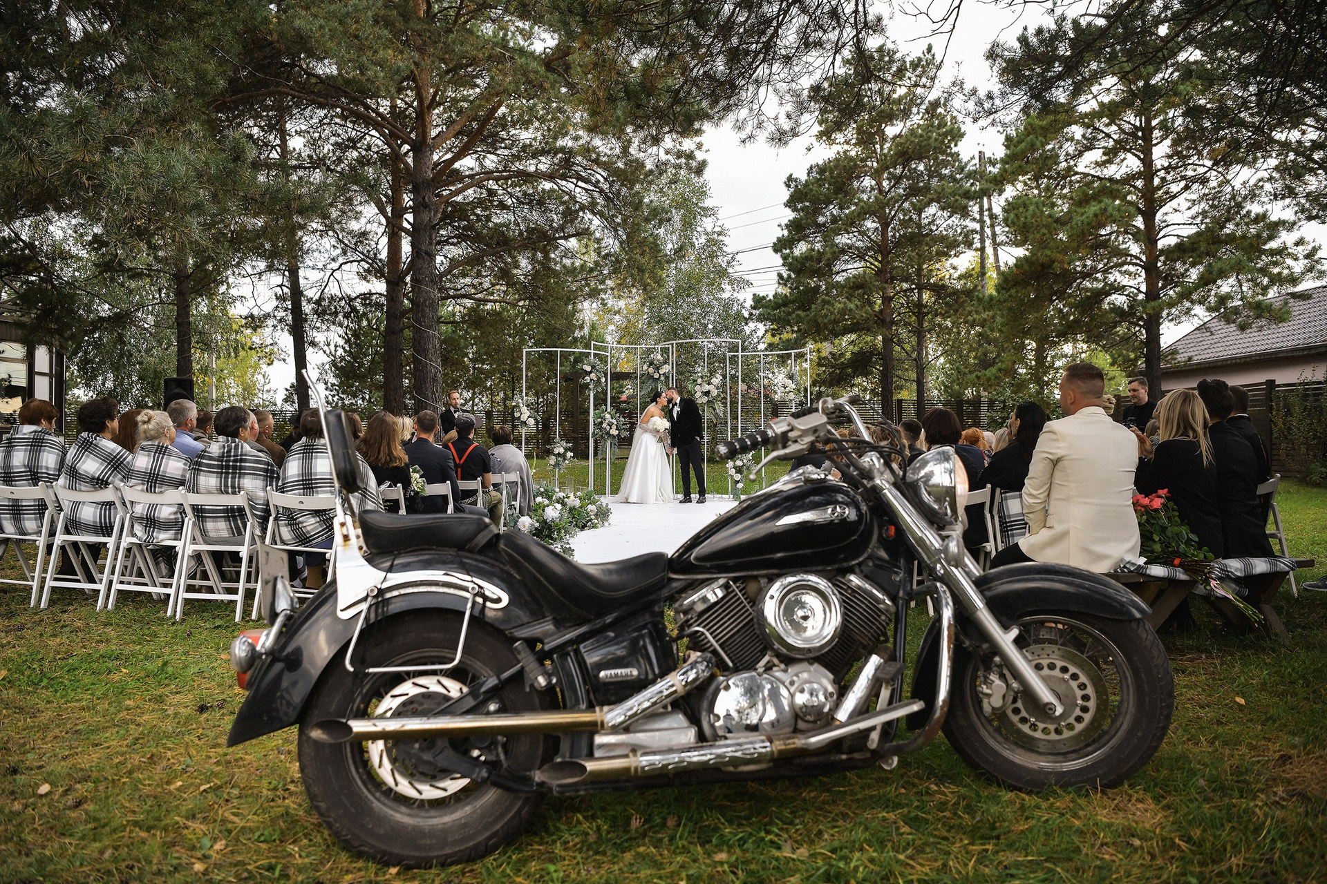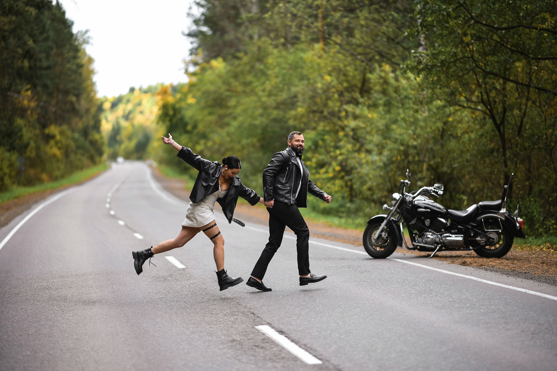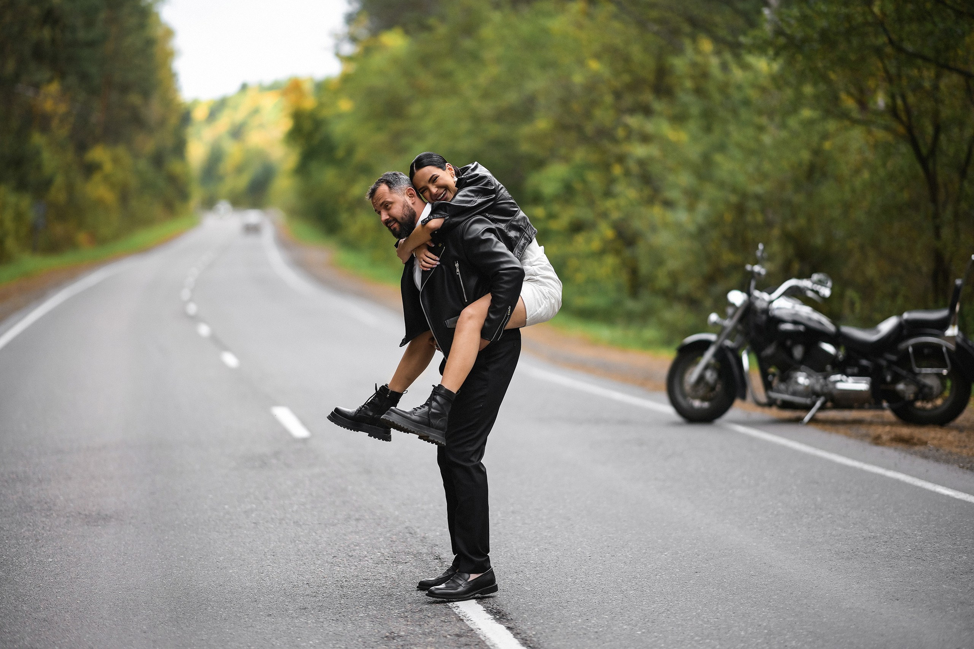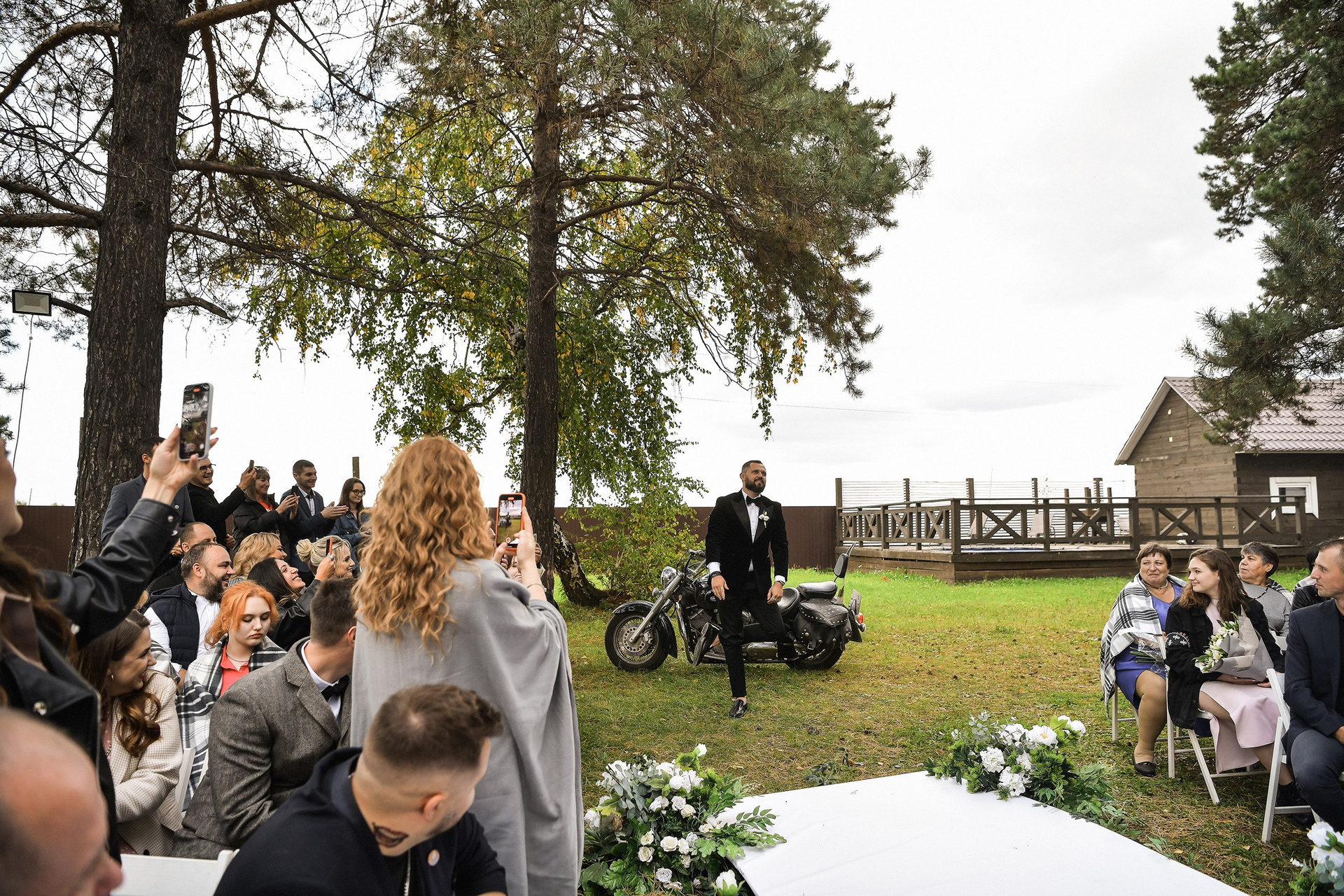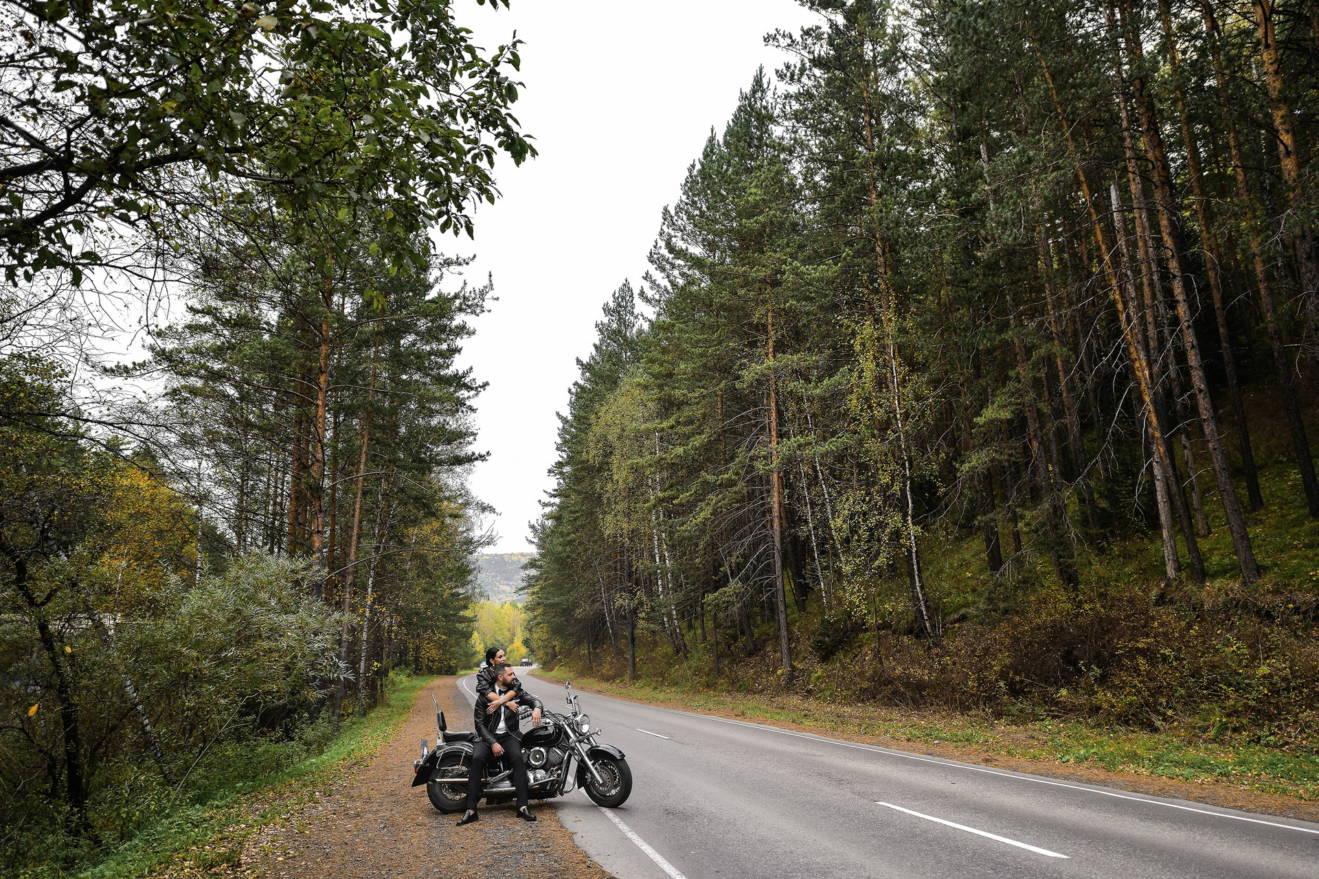 Здесь 2 дня съемок: сама свадьба, а фотосессия на мотоциклах и на море снимались в отдельный день.