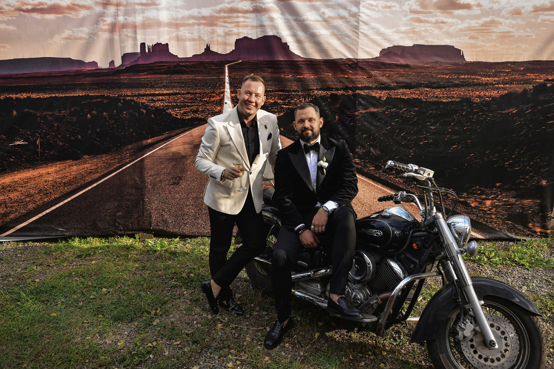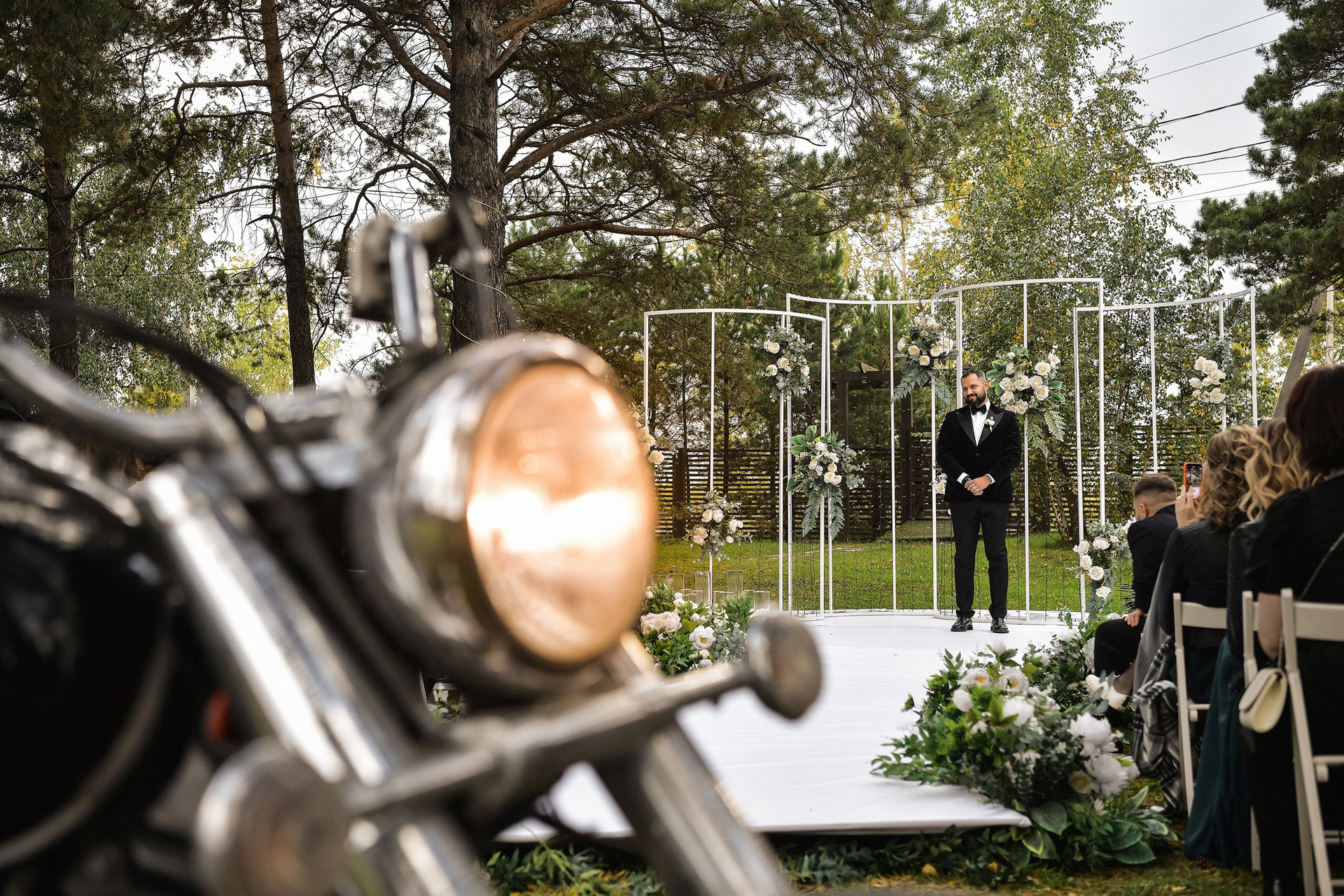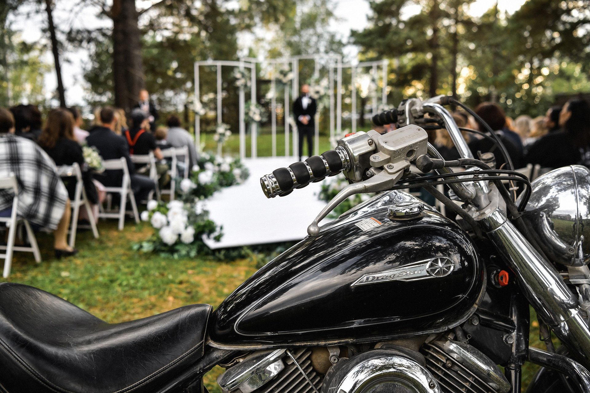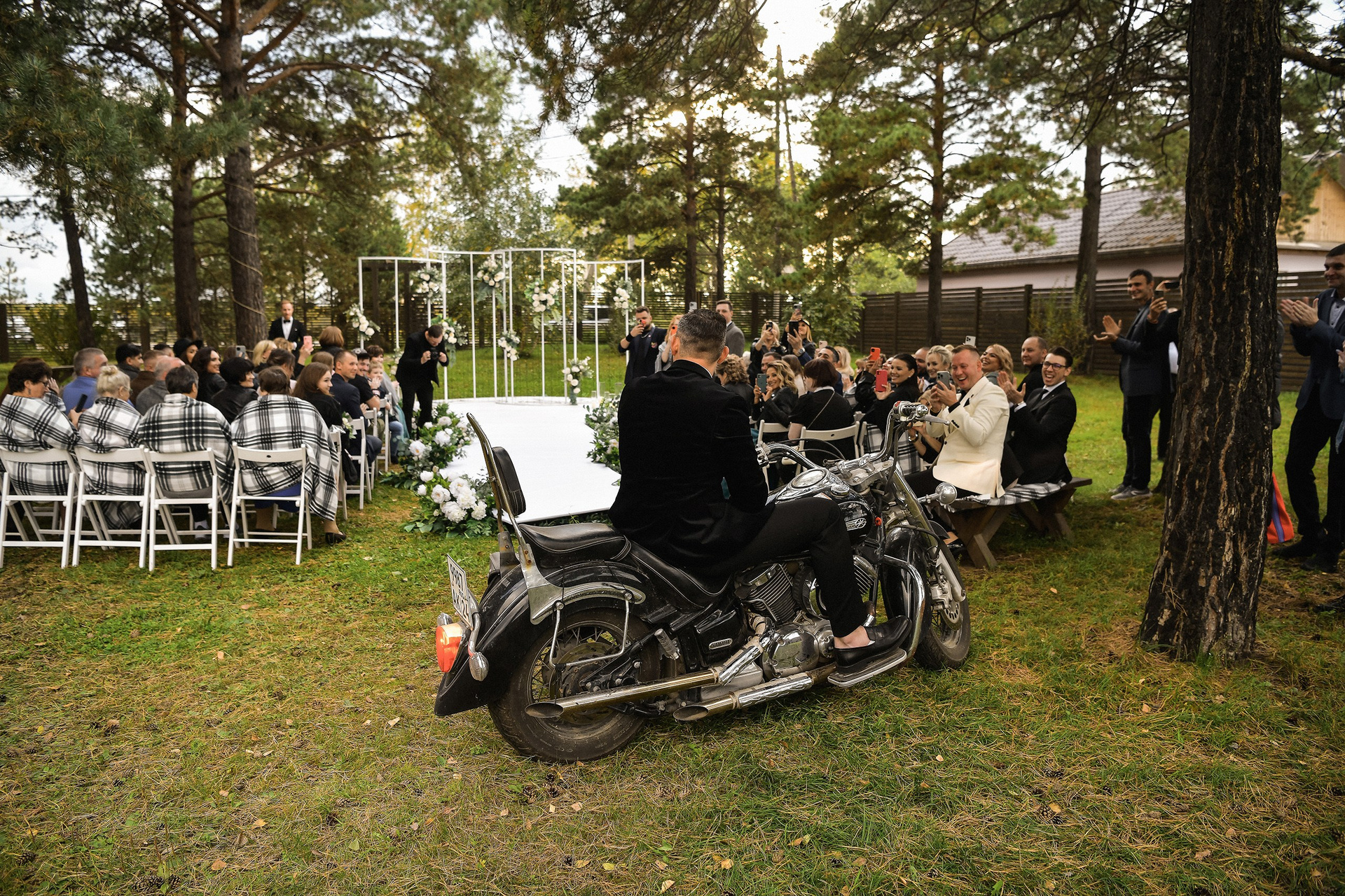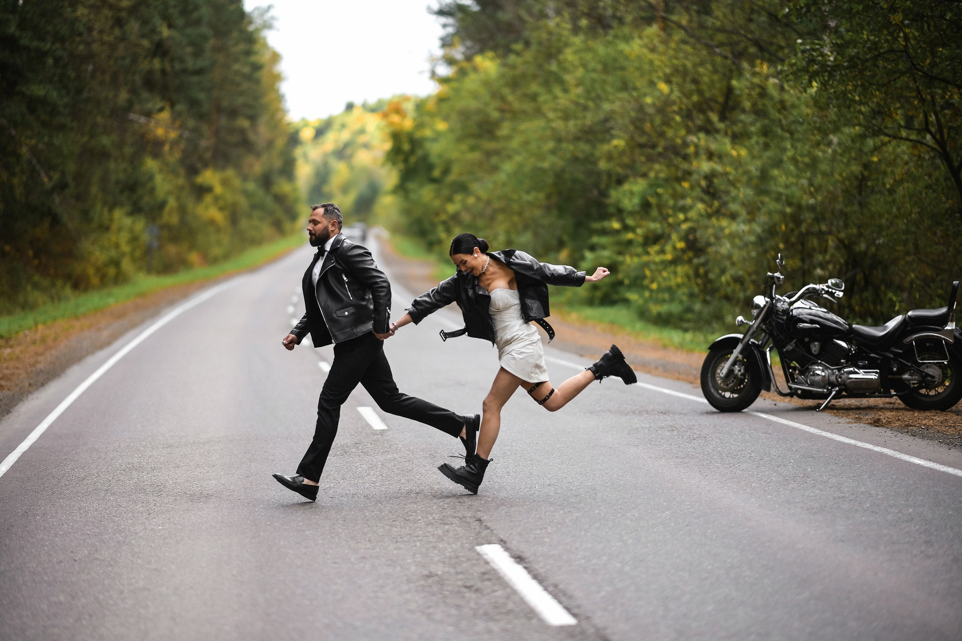 Здесь 2 дня съемок: сама свадьба, а фотосессия на мотоциклах и на море снимались в отдельный день.