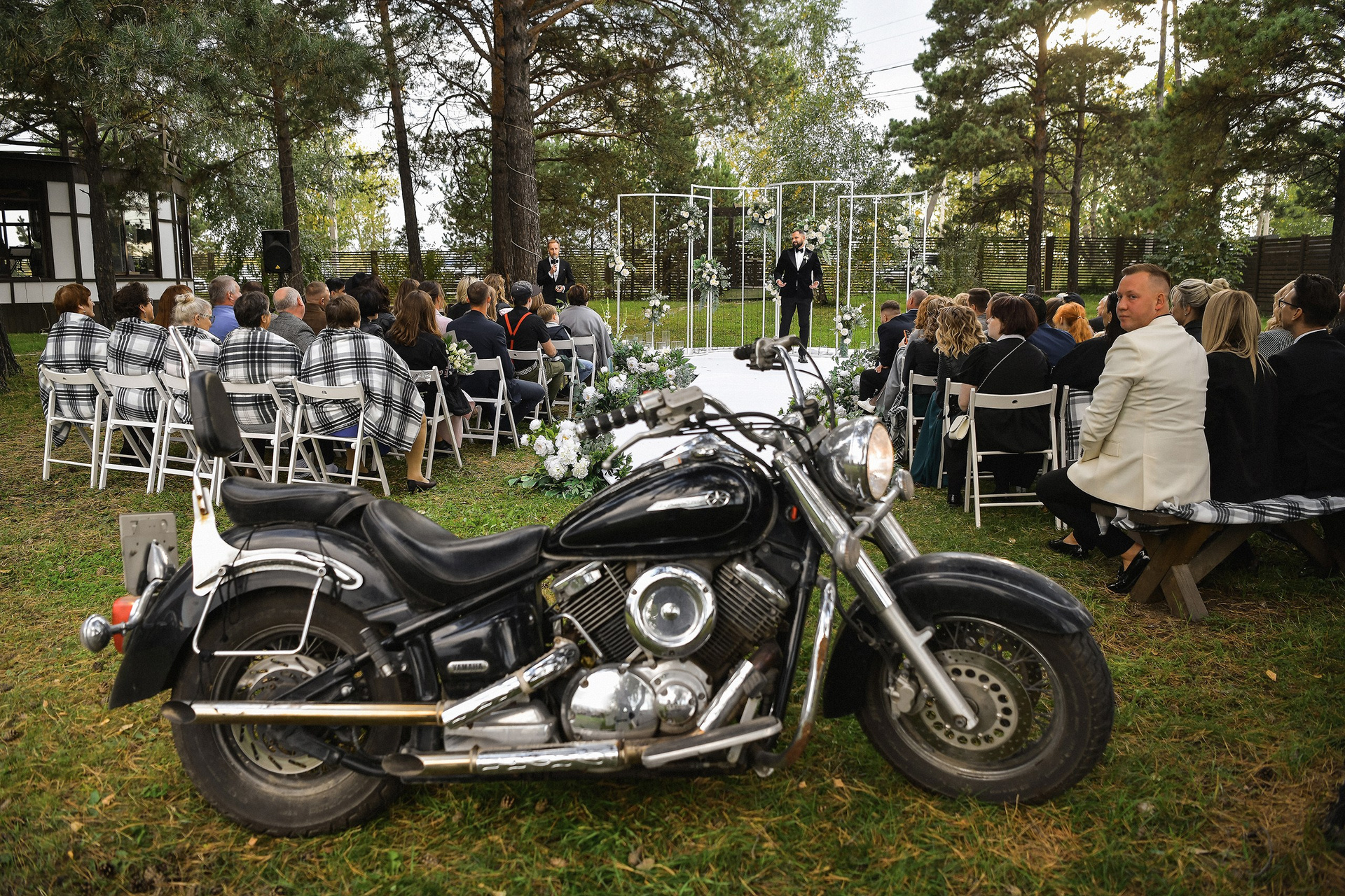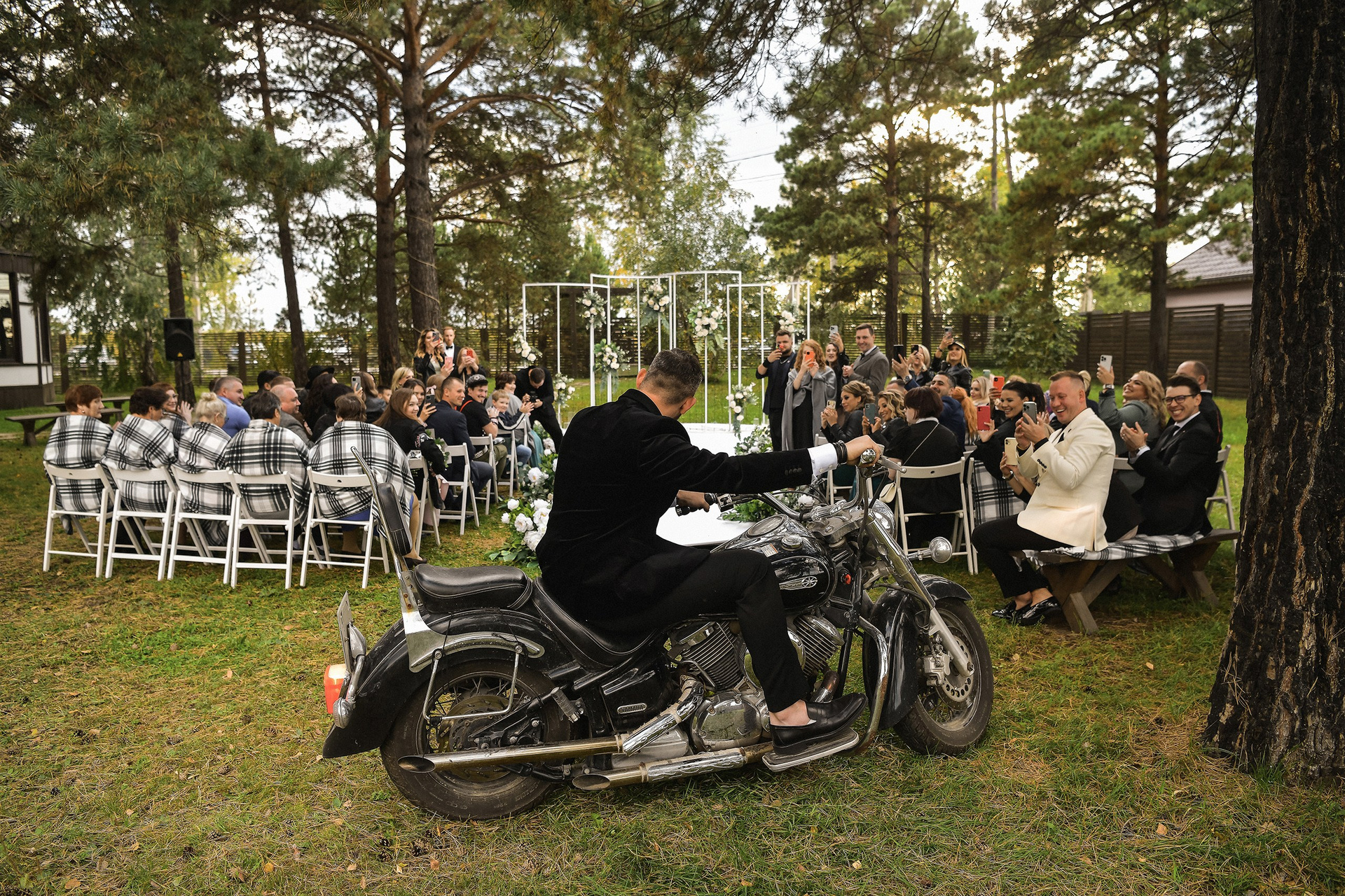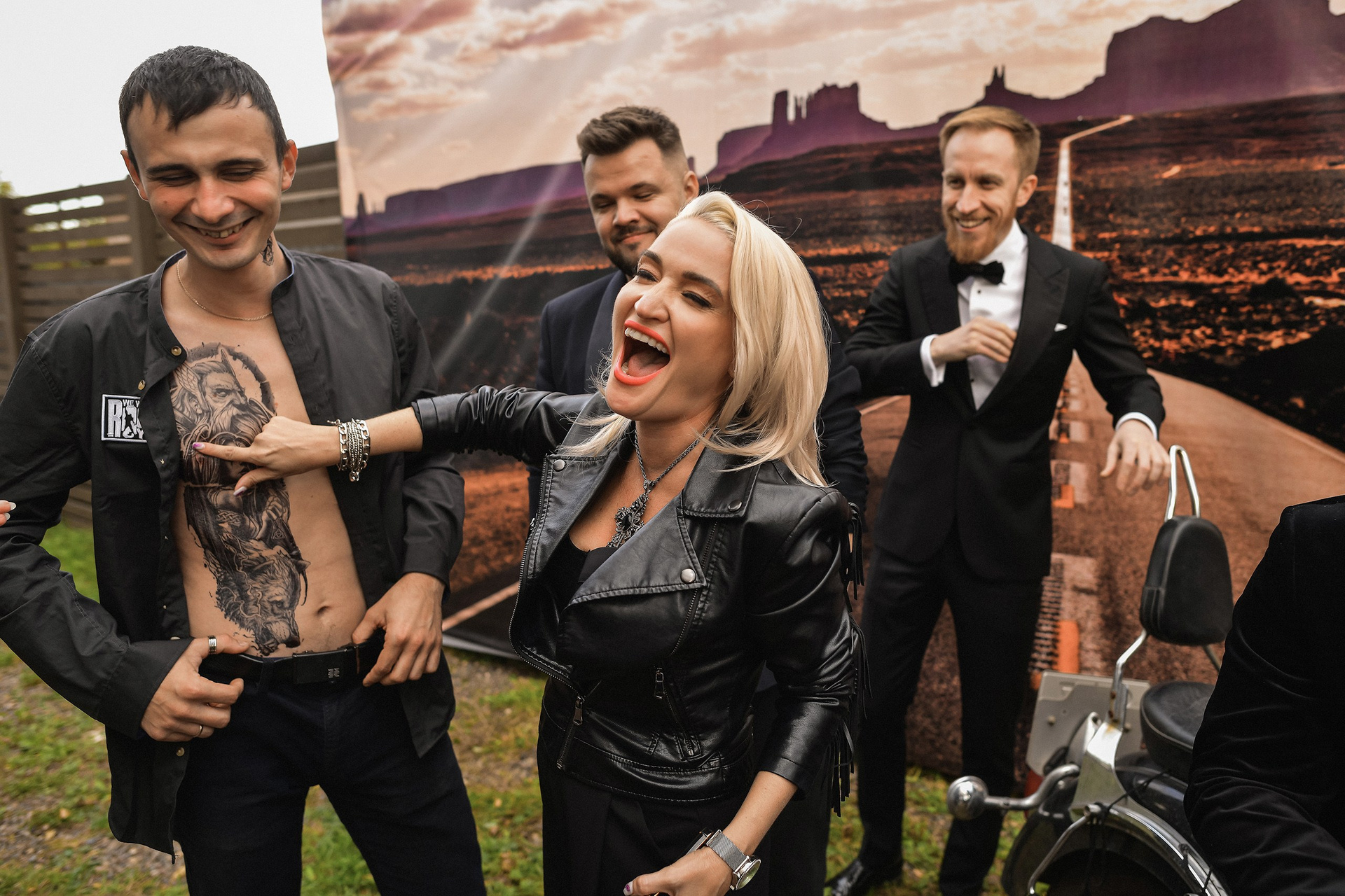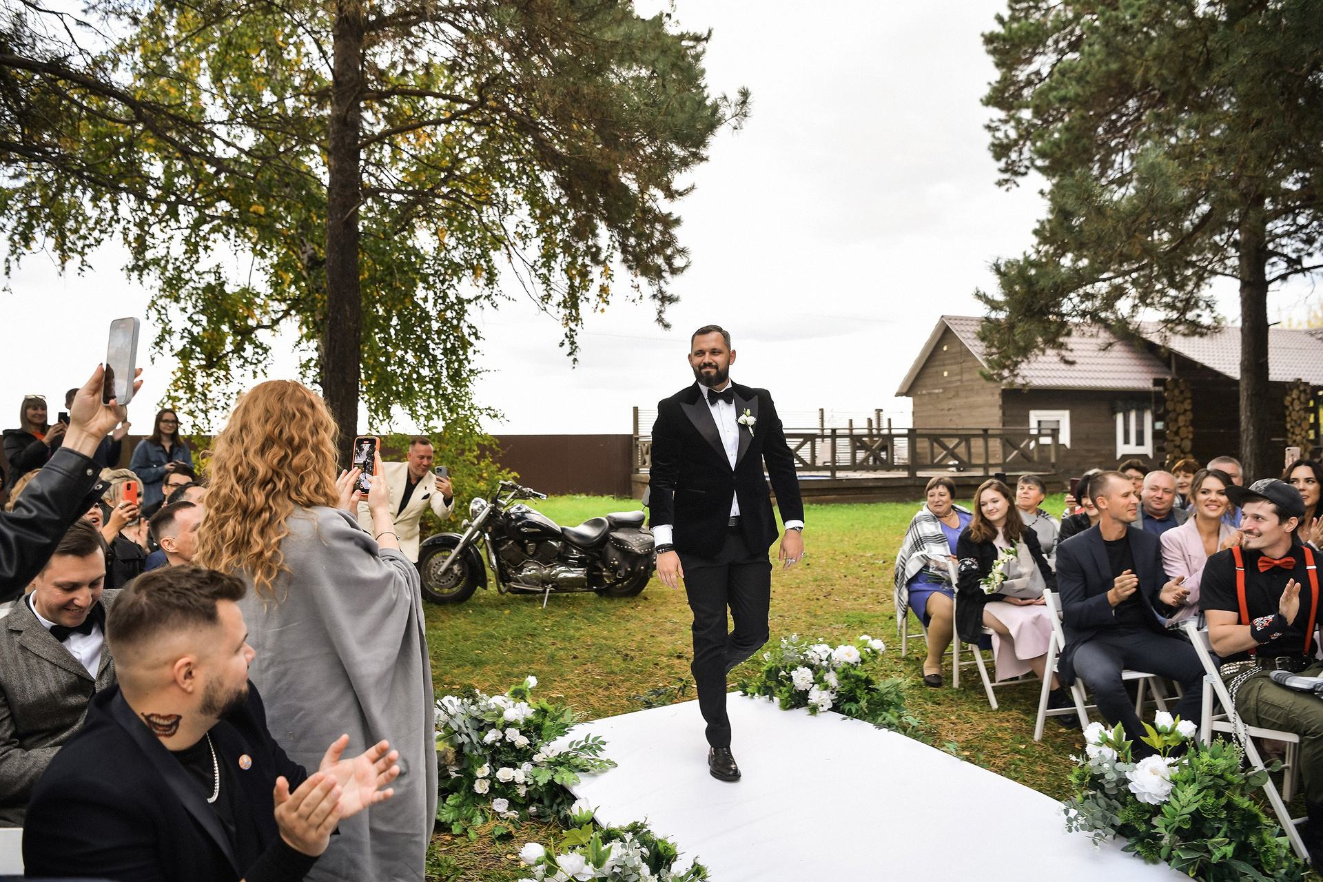 Здесь 2 дня съемок: сама свадьба, а фотосессия на мотоциклах и на море снимались в отдельный день.