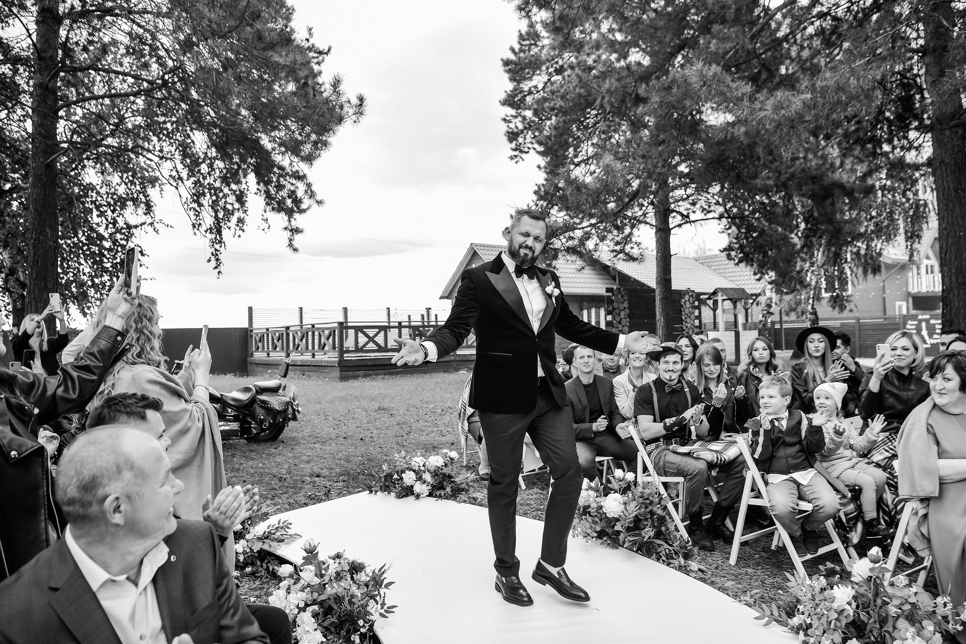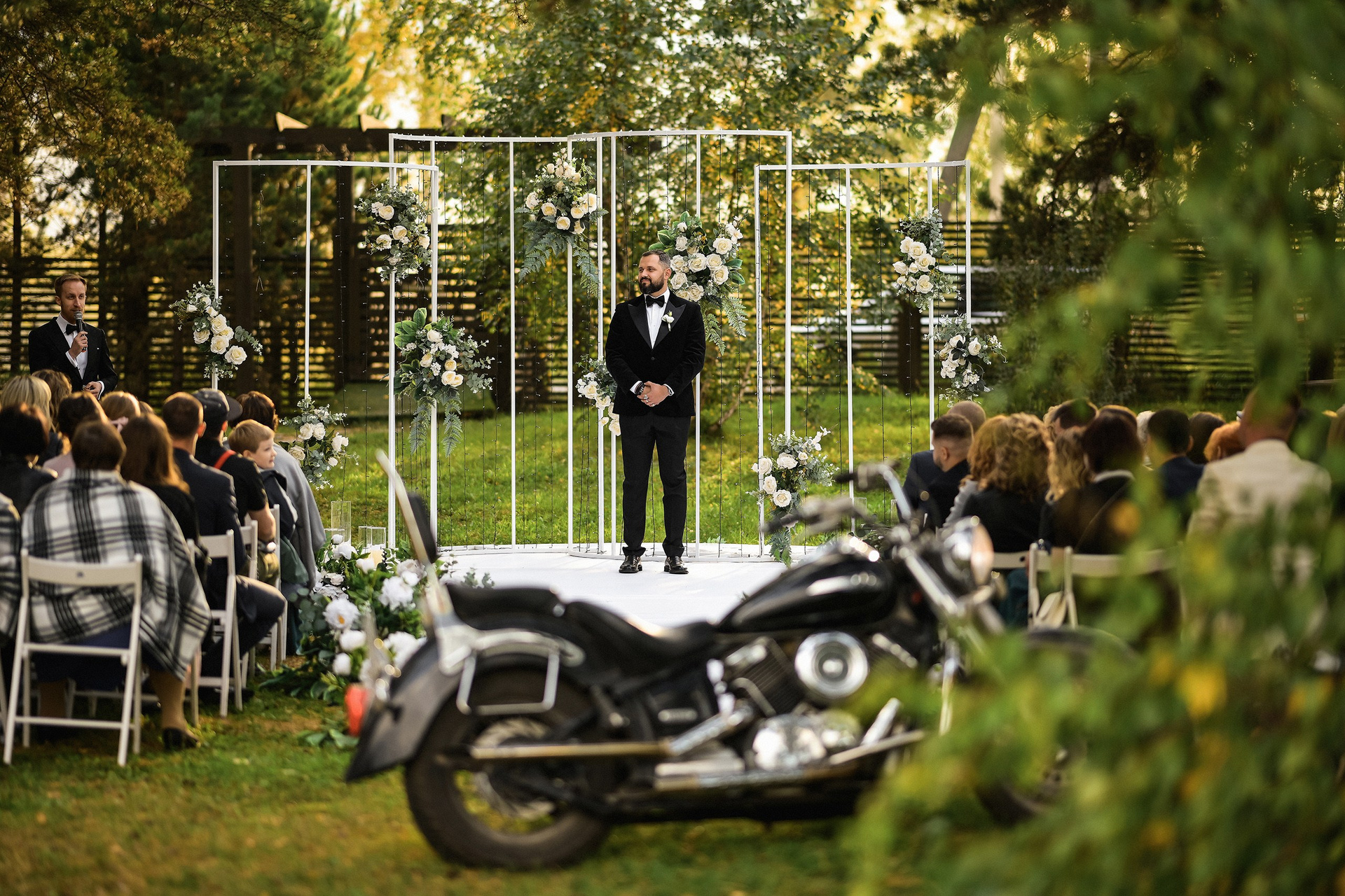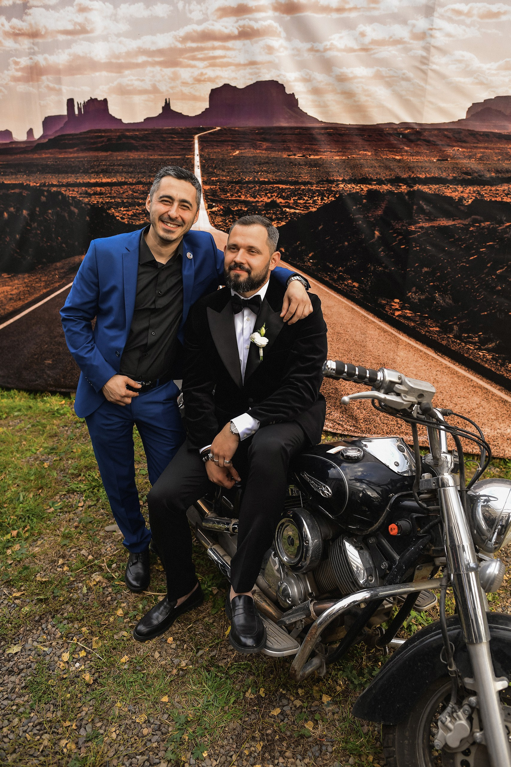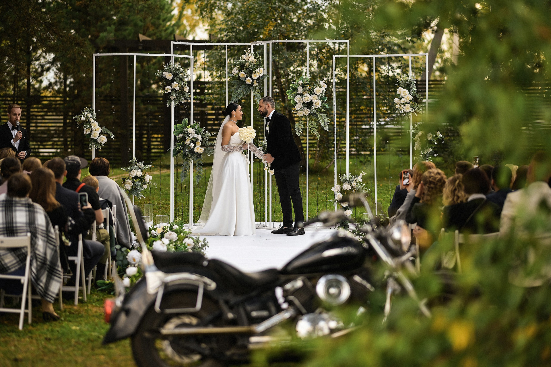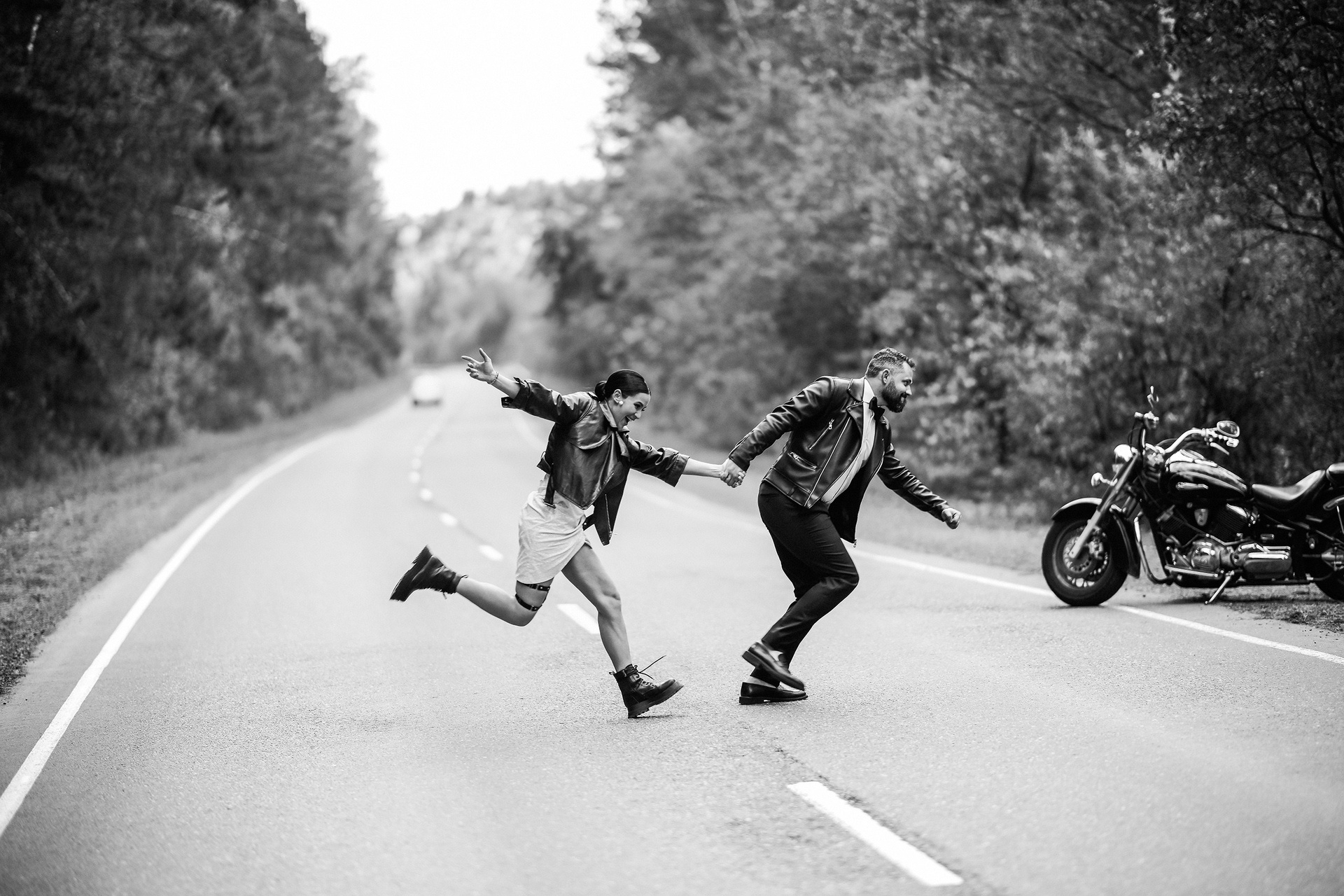 Здесь 2 дня съемок: сама свадьба, а фотосессия на мотоциклах и на море снимались в отдельный день.