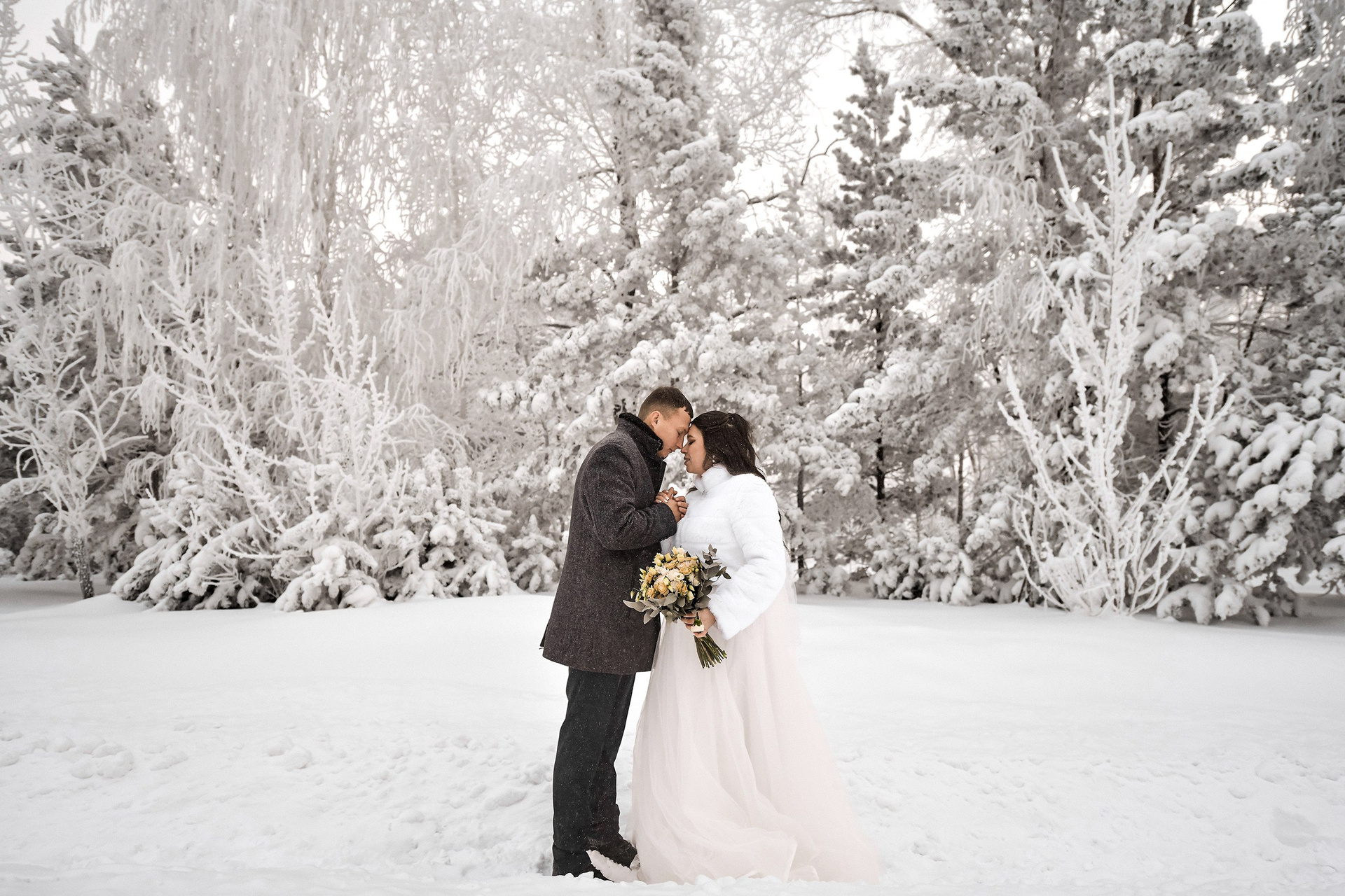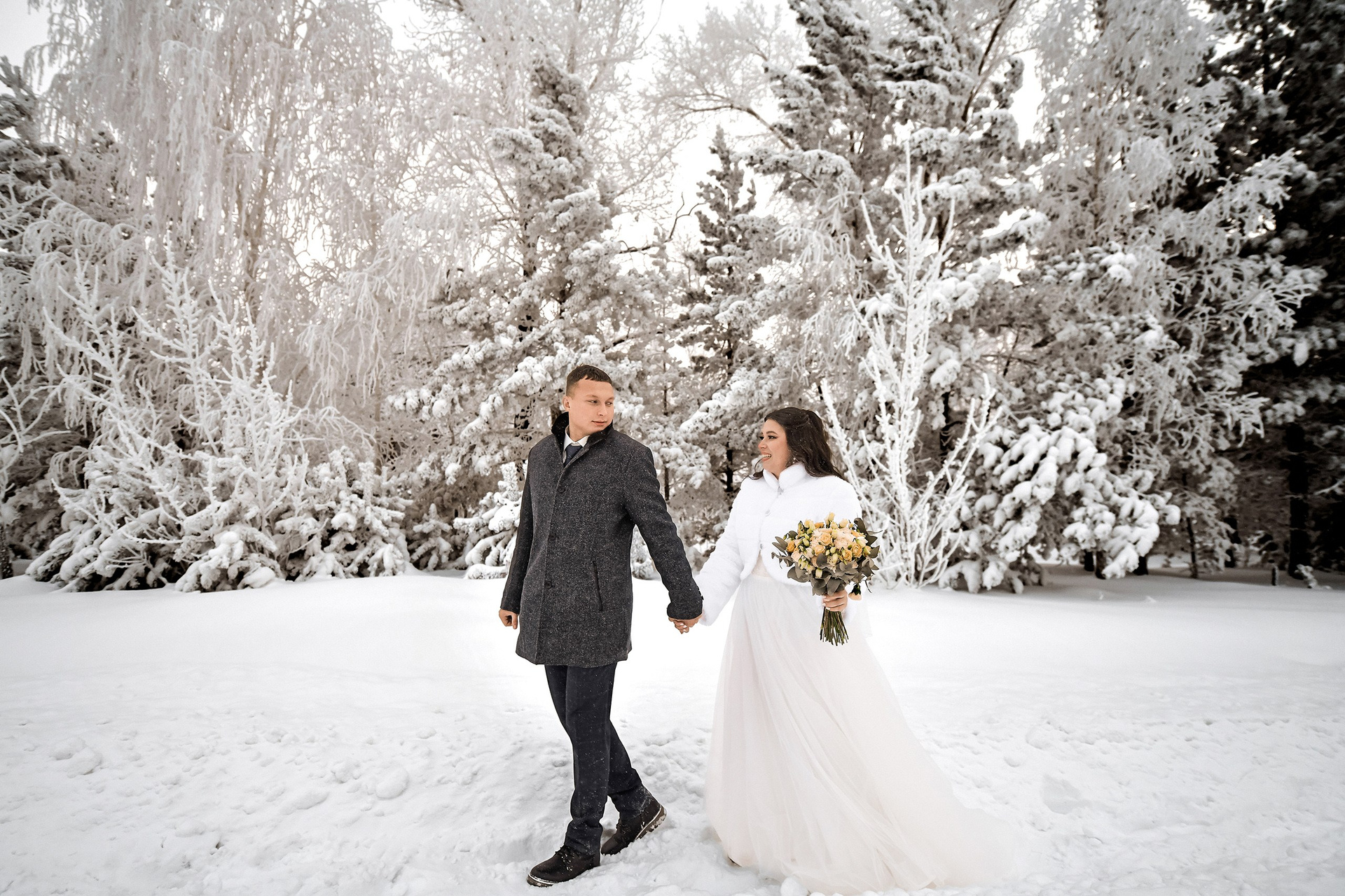 «Зимой жениться холодно и серо» — забудьте этот стереотип! Зимняя свадьба — это особая магия, недоступная в другое время года. Это чистый белый цвет, мягкий рассеянный свет (идеальный для кожи!) и невероятный уют. Мы не будем морозить вас часами на улице. Сделаем короткую, но эффектную прогулку с падающим снегом, а потом согреемся в красивом интерьере, отеле или студии!)